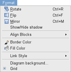 This menu allows to activate / deactivate the grid. With the grid, the block and link placement on the working area is more easy and you obtain a more readable diagram.
