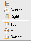 When you select several blocks, it is possible to align them on horizontal axis (Top, Bottom and Middle) or on vertical axis (Left, Right, Center).