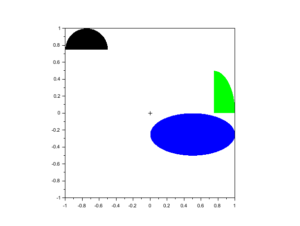 plot2d(0,0,-1,"031"," ",[-1,-1,1,1]) arcs=[-1.0 0.0 0.5; // upper left x 1.0 0.0 0.5; // upper left y 0.5 1.0 0.5; // width 0.5 0.5 1.0; // height 0.0 0.0 0.0; // angle 1 180*64 360*64 90*64]; // angle 2 xfarcs(arcs,[1,2,3])