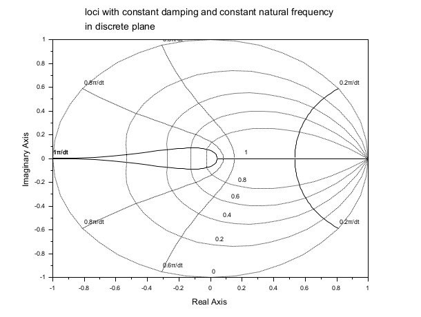 plots z-plane grid lines: lines of constant damping factor (selection given by zeta) and natural frequency (selection given by wn) are drawn in within the unit Z-plane circle.